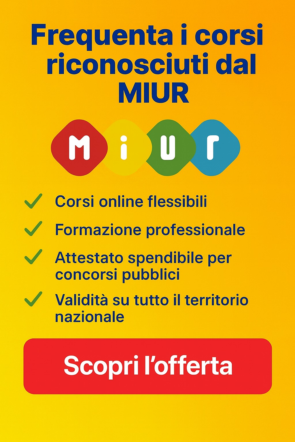 Associociariaservizi ti offre corsi online riconosciuti dal MIUR, pensati per chi vuole formarsi comodamente da casa, accedere subito alla piattaforma e ottenere certificazioni valide in tutta Italia. Iscriversi ai nostri percorsi significa investire nel proprio futuro con la massima flessibilità e garanzia: puoi studiare quando vuoi, senza vincoli di orario, e ottenere titoli utili per concorsi pubblici, graduatorie docenti e ATA, o per migliorare le tue competenze professionali. La nostra offerta include master universitari, certificazioni informatiche e linguistiche, corsi socio-sanitari, formazione tecnica e amministrativa, e molto altro. Ogni corso è progettato per essere accessibile, aggiornato e spendibile nel mondo del lavoro.